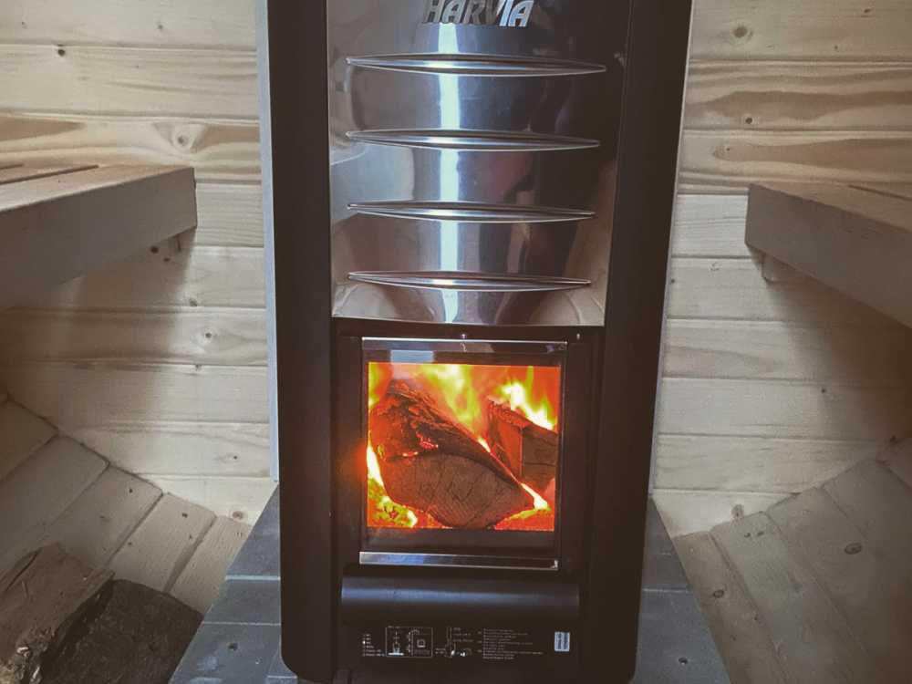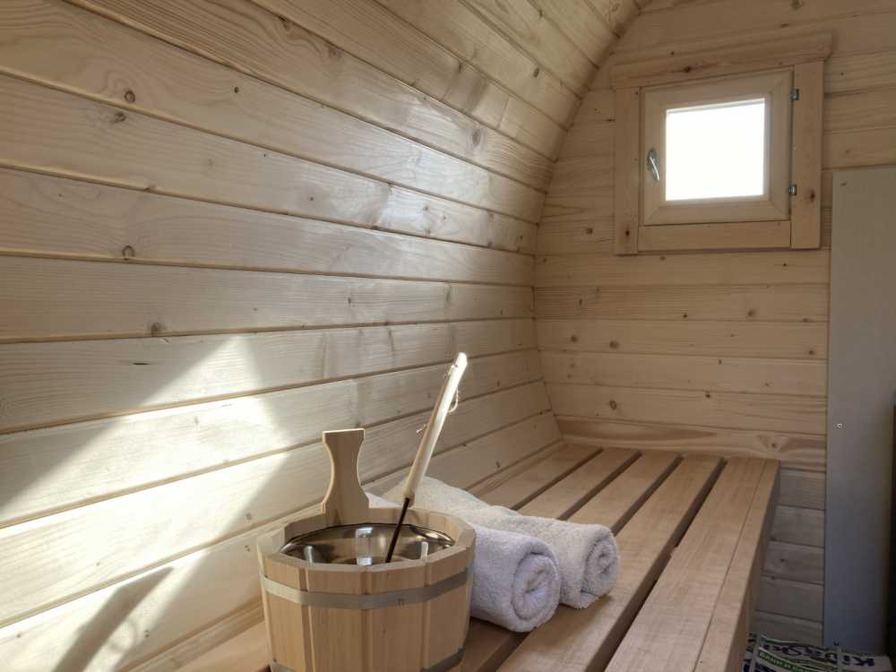 In der Holzofensauna ist Platz genug für bis zu 6 Personen.